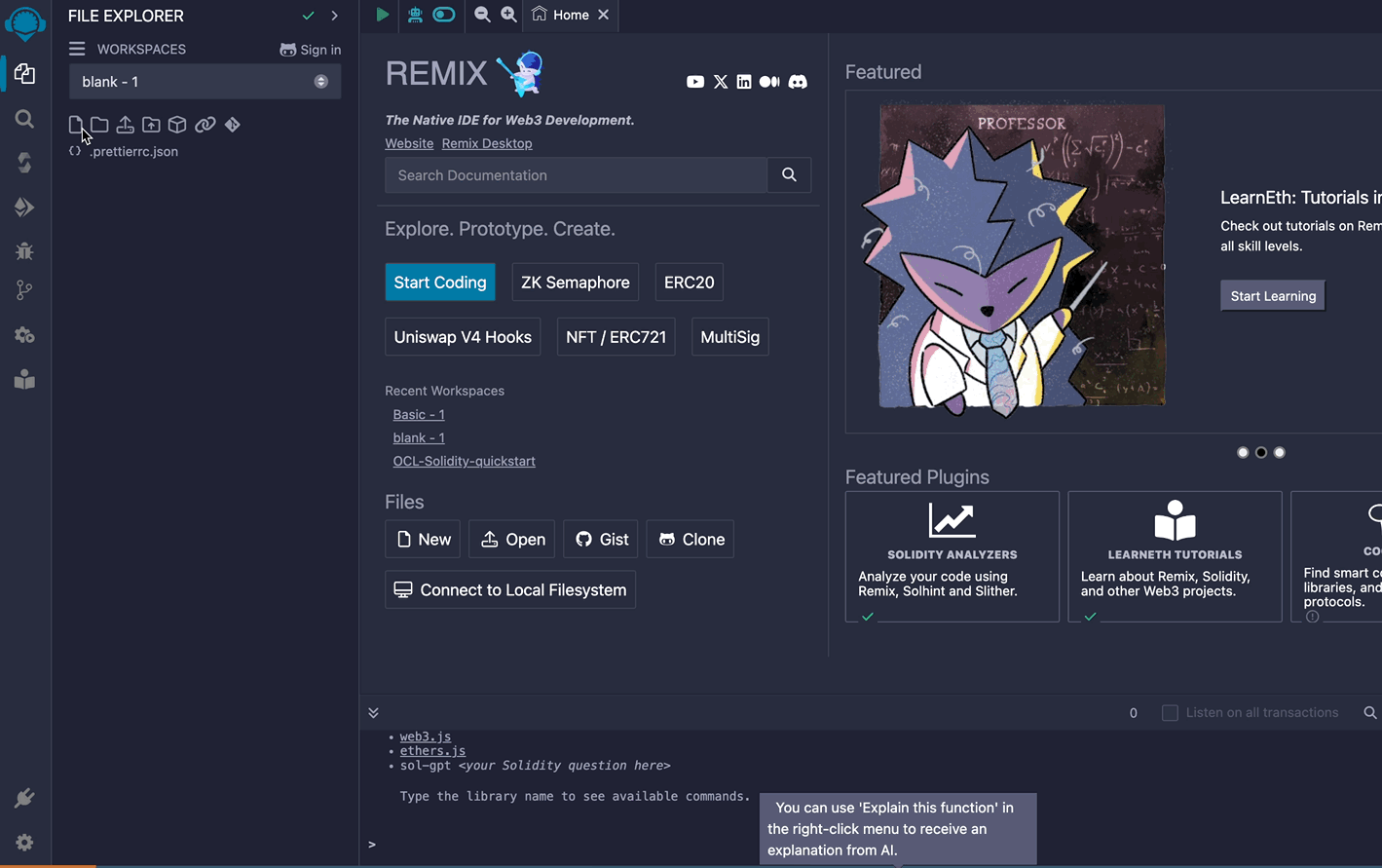 In the last step, we'll connect Remix to Metamask so we can deploy our smart contract to the local chain using Remix.